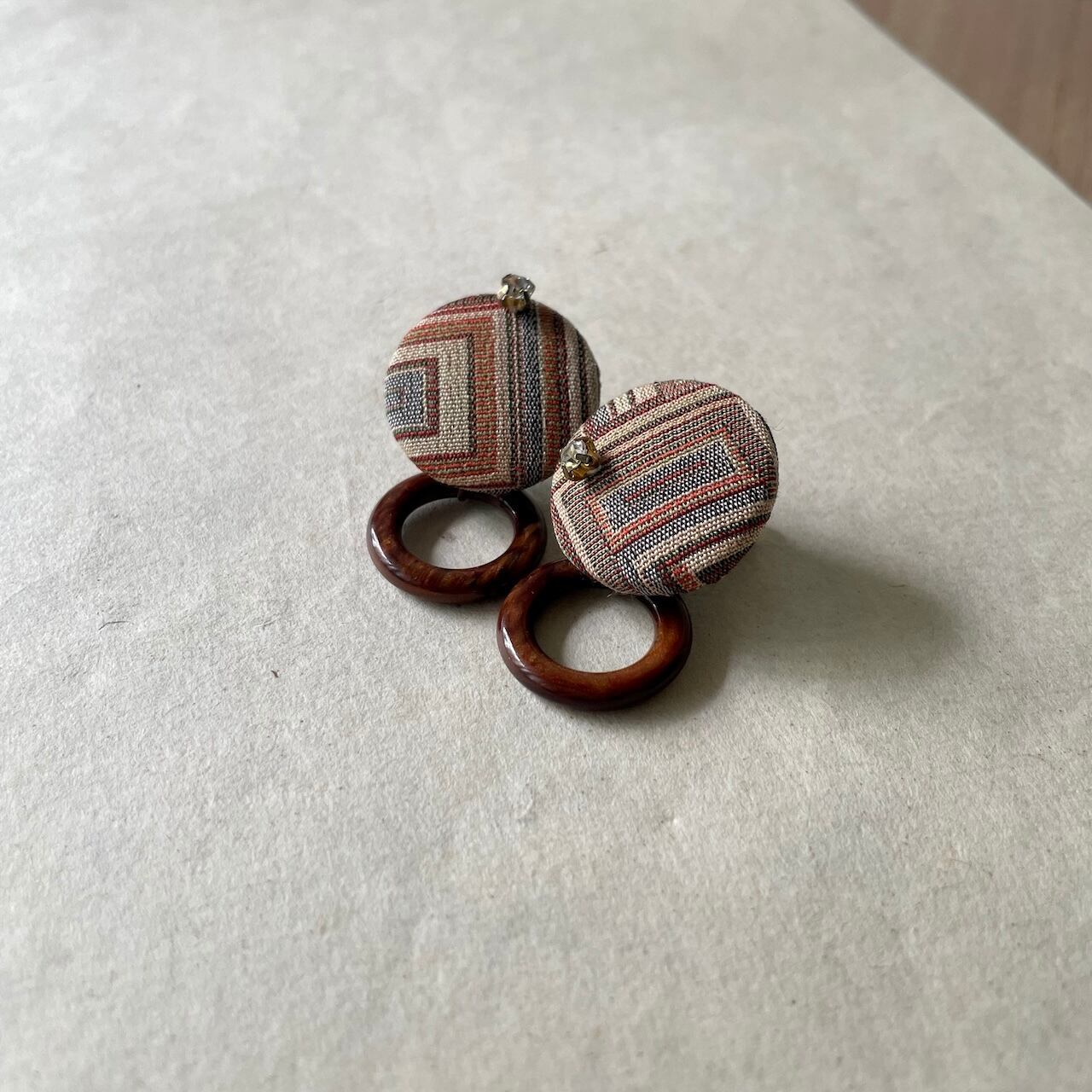 Vintage kimono fabric × vintage materials くるみボタンイヤリング【pebble Ammi】