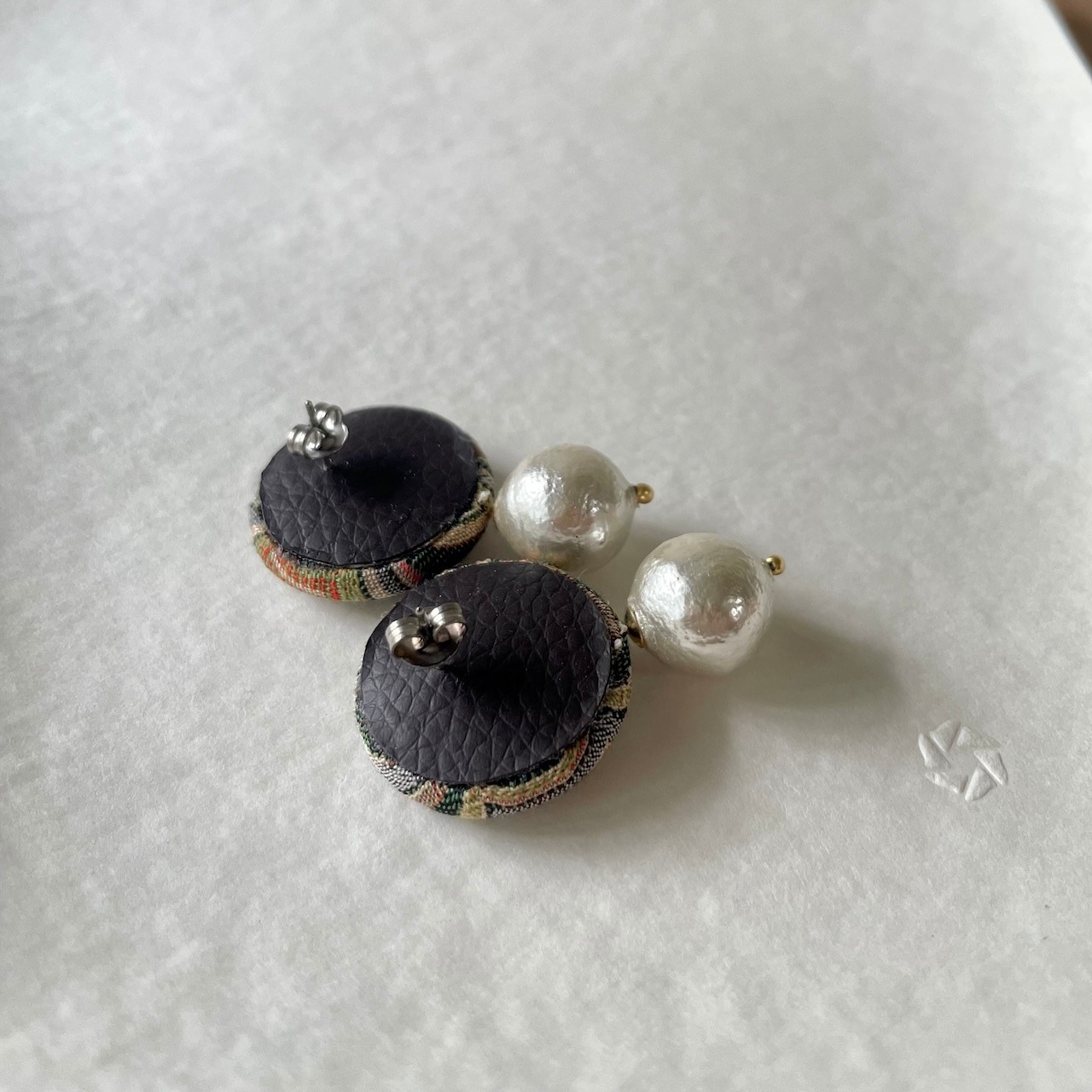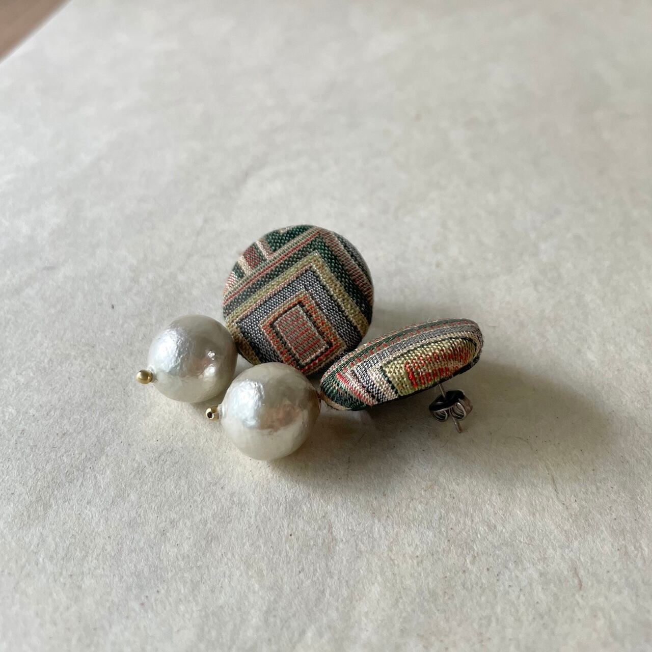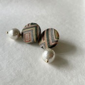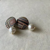Vintage kimono fabric × vintage paper pearl くるみボタンピアス【pebble Ammi】