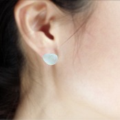 涼やかな、白と淡い水色、ふたつのシーグラスを使ったシンプルなスタッドピアスに