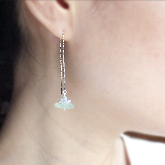 Sualocin シーグラスと芥子パールのシルバーアメリカンピアス