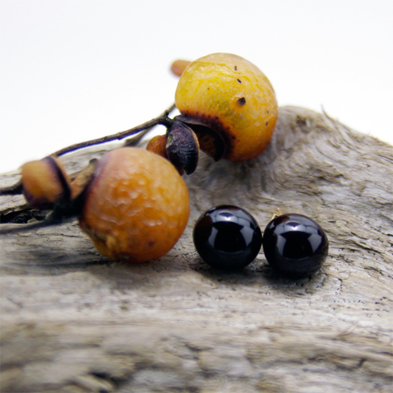 写真4枚目のピアスと一緒に写っているのが枝付きのムクロジの実(果実)です。