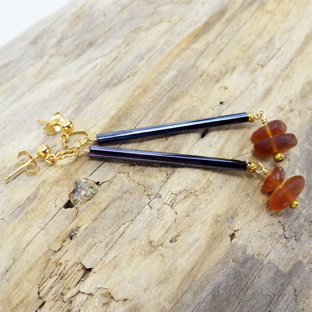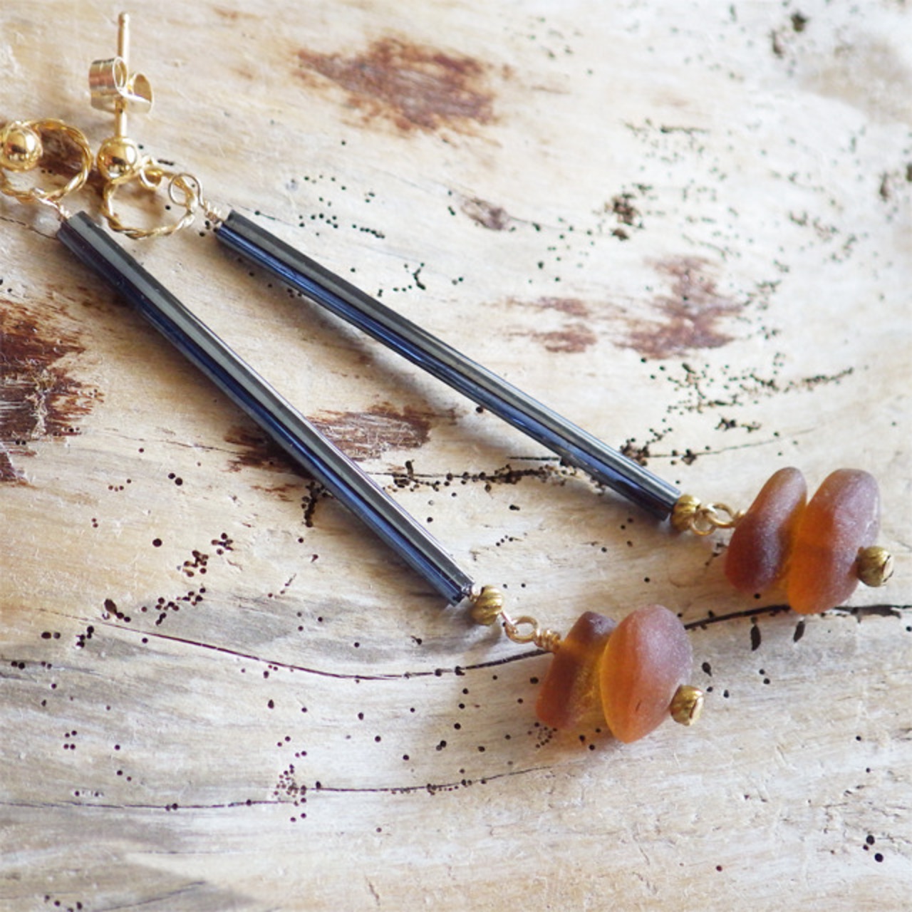シーグラスの透明感あるブラウンの色合わせがシックな一品。